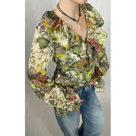 Bluzka kopertowa- bawełna z jedwabiem w motyw botaniczny.